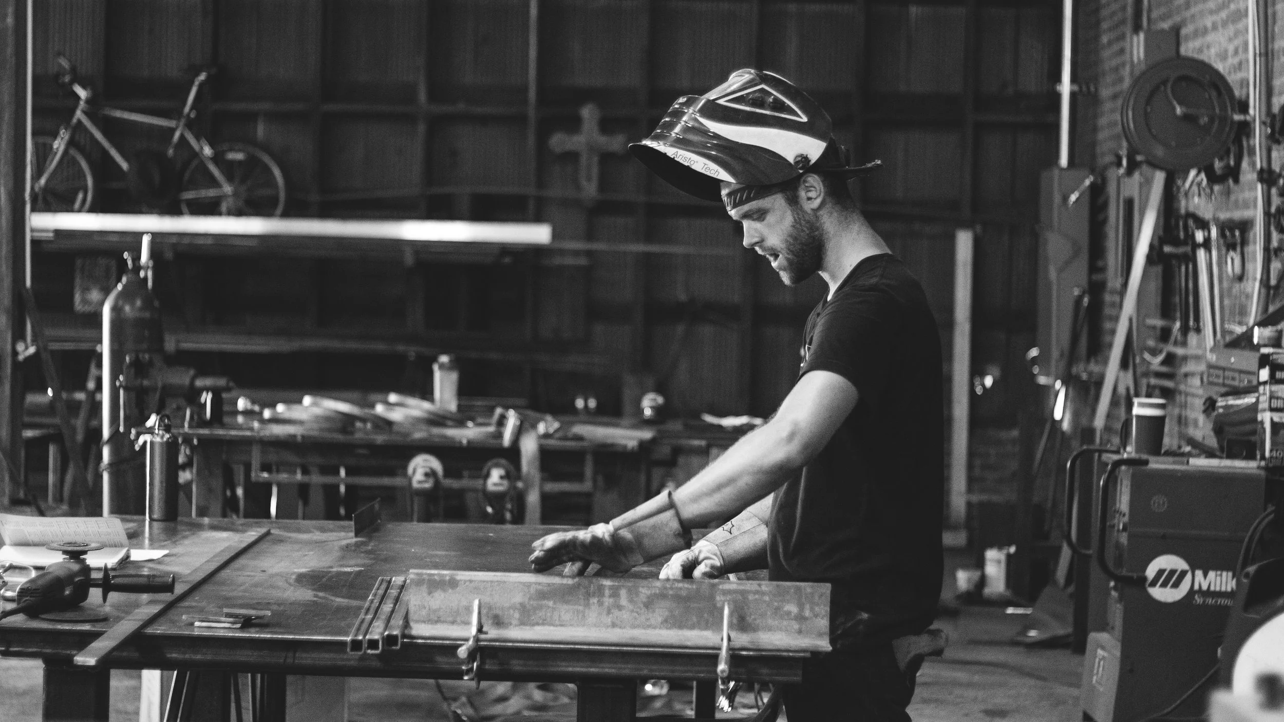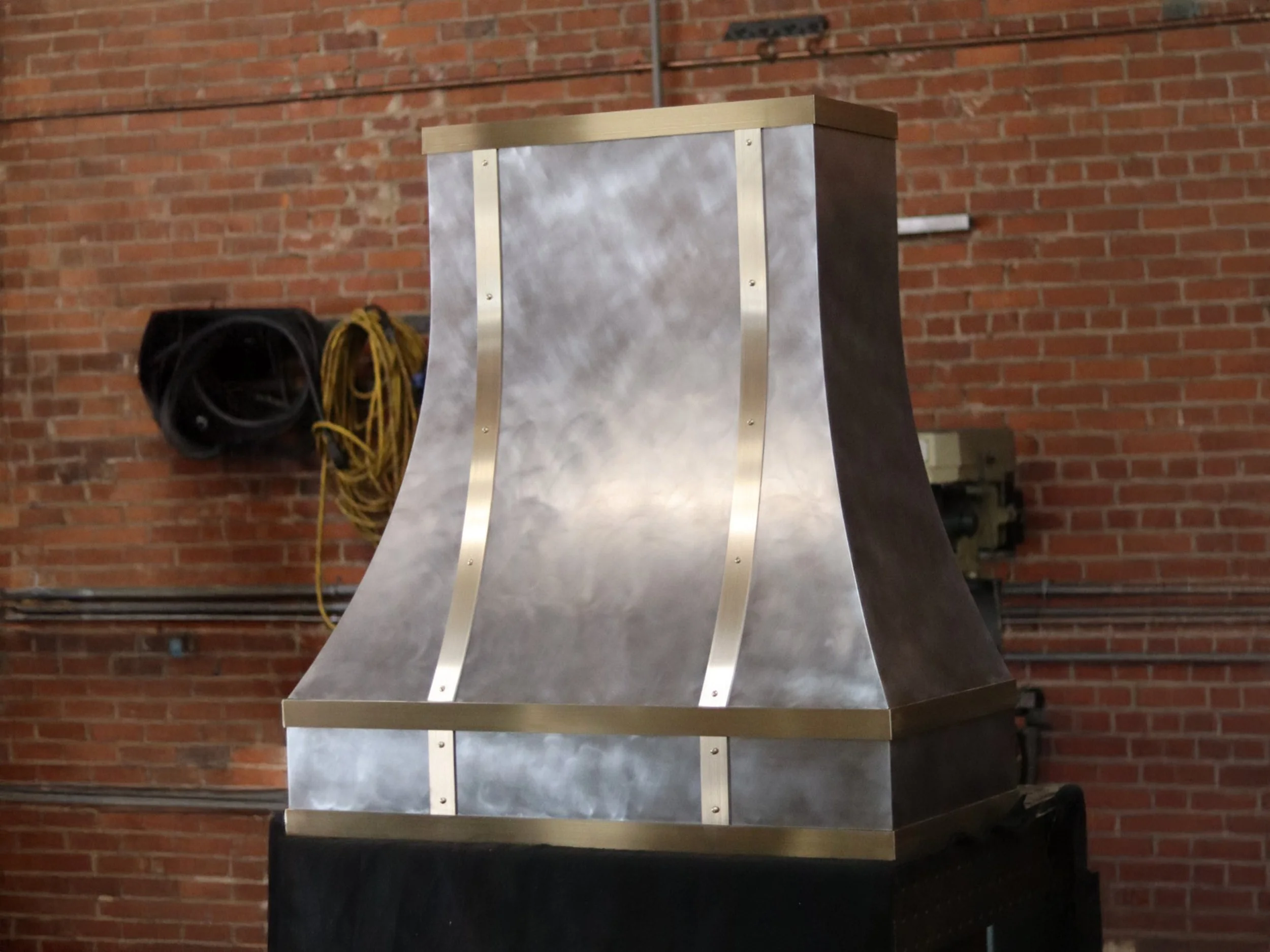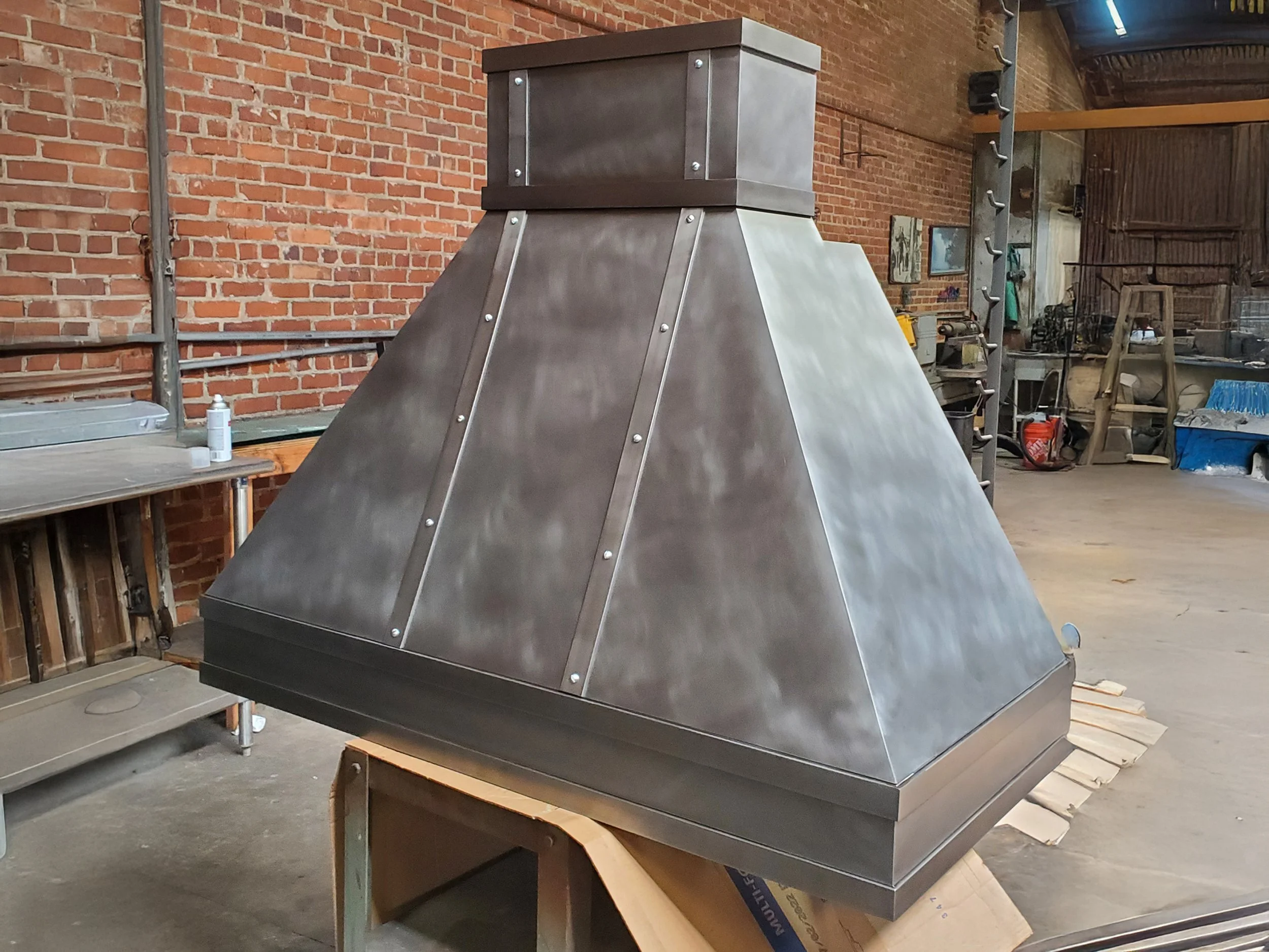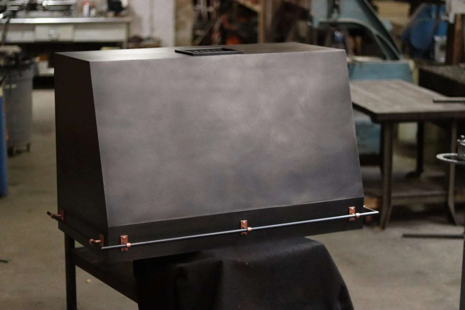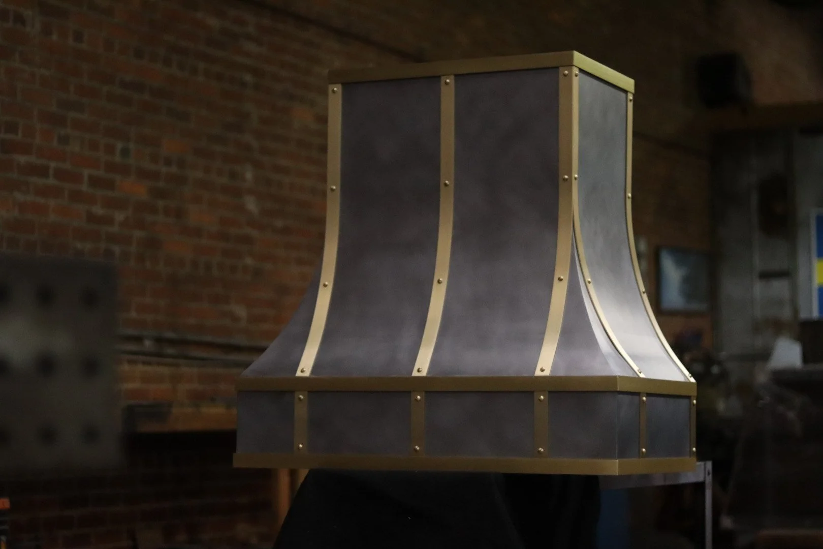 TRIM: Deep Darkened Mild Steel with Brass Corner Guards, Brass Rivets